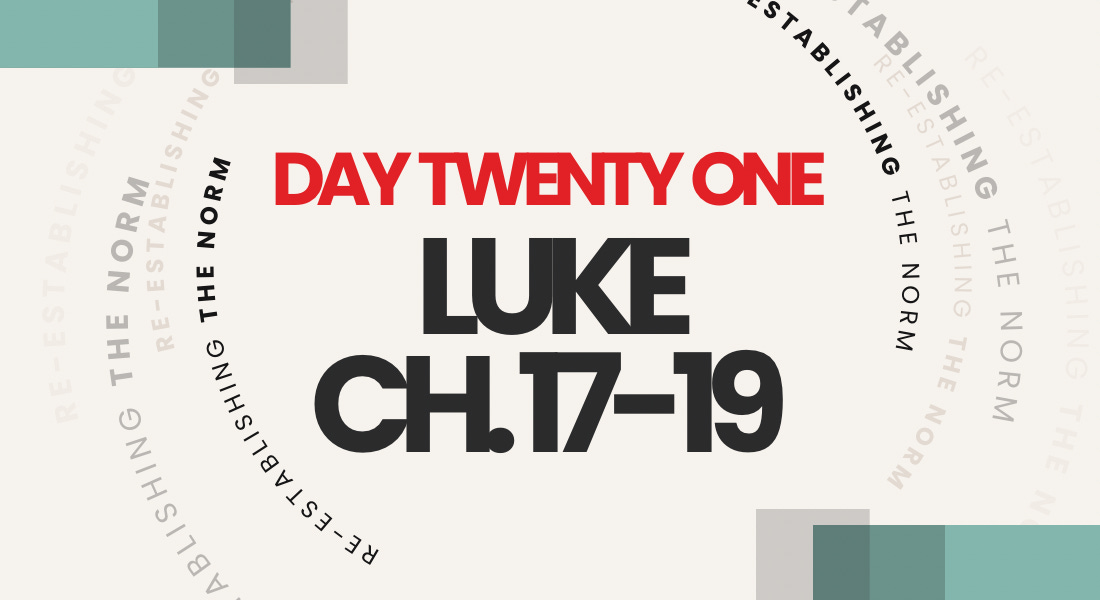Today’s reading is Luke chapters 17–19, and these chapters continue to show Jesus reestablishing the norm of life with God.