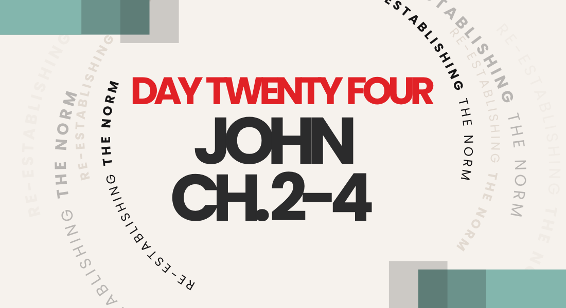 Today’s reading is John chapters 2 through 4, and we continue with this month’s theme: Reestablishing the Norm.