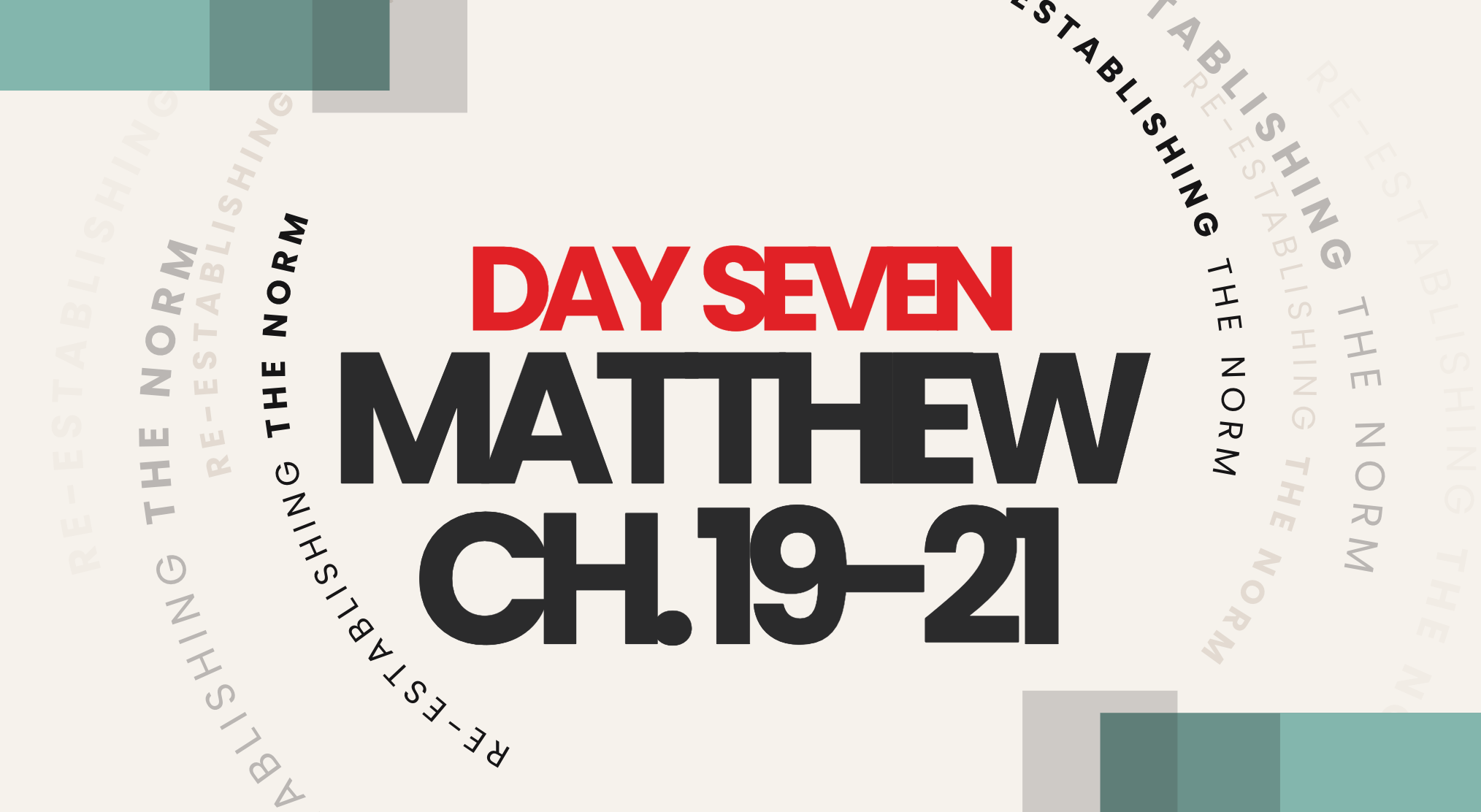 Welcome to Day Seven! Remember, our focus for the month is reestablishing the norm. We are rediscovering how Jesus shows us the true normalcy in being one with God.